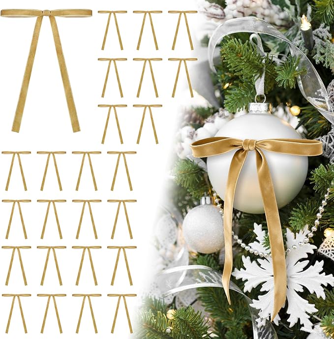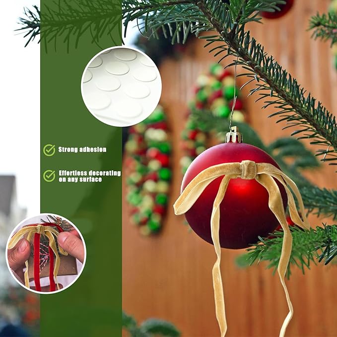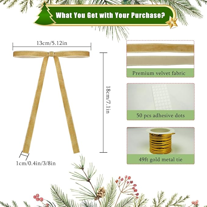 - Velvet Elegance for Your Christmas- Crafted from premium velvet, these christmas bows add a soft, shimmering elegance to your holiday decor. Each package includes 24 pcs of velvet ribbons, one 15-meter metal tie, and 50 pcs of adhesive dots. Perfect for Christmas tree, gift wrapping, wreaths, or mantel displays.