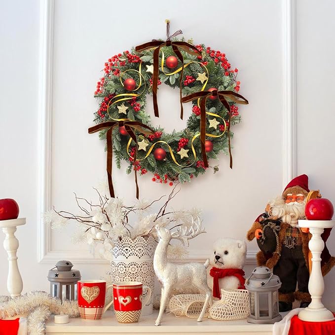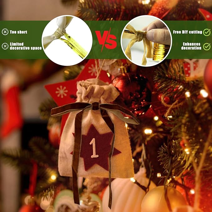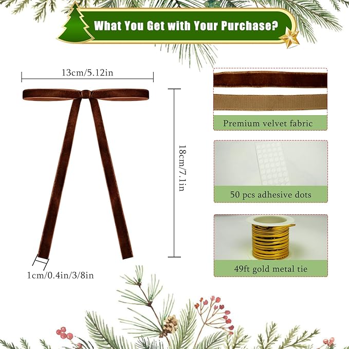- Velvet Elegance for Your Christmas - Crafted from premium velvet, these christmas bows add a soft, shimmering elegance to your holiday decor. Each package includes 24 pcs of velvet ribbons, one 15-meter metal tie, and 50 pcs of adhesive dots. Perfect for Christmas tree, gift wrapping, wreaths, or mantel displays.