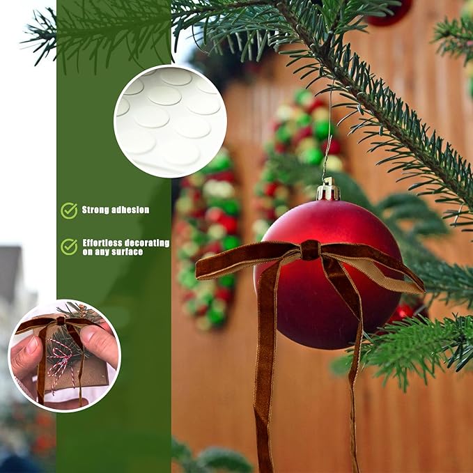 - Complete Decorating Kit - Uniquely includes 50 adhesive dots and 15m metal tie! Use the strong dots to secure bows to smooth surfaces like windows or mirrors effortlessly. The flexible wire ribbon helps attach vintage bows to tree branches, railings or staircases securely without slipping. These thoughtfully included accessories ensure a smooth, effortless, and creative decorating experience.