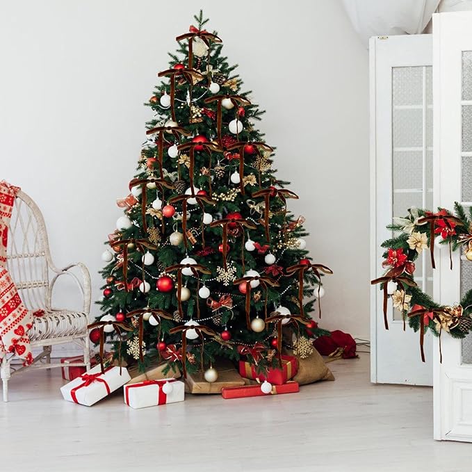- Durable & Reusable Design - Made with high-quality velvet and reinforced wiring, our Christmas tree bows are built to last. Unlike flimsy alternatives, they resist crushing and fading, so you can enjoy their beauty year after year. Their lightweight yet sturdy construction makes storage effortless, ensuring your decor remains pristine for future celebrations.
