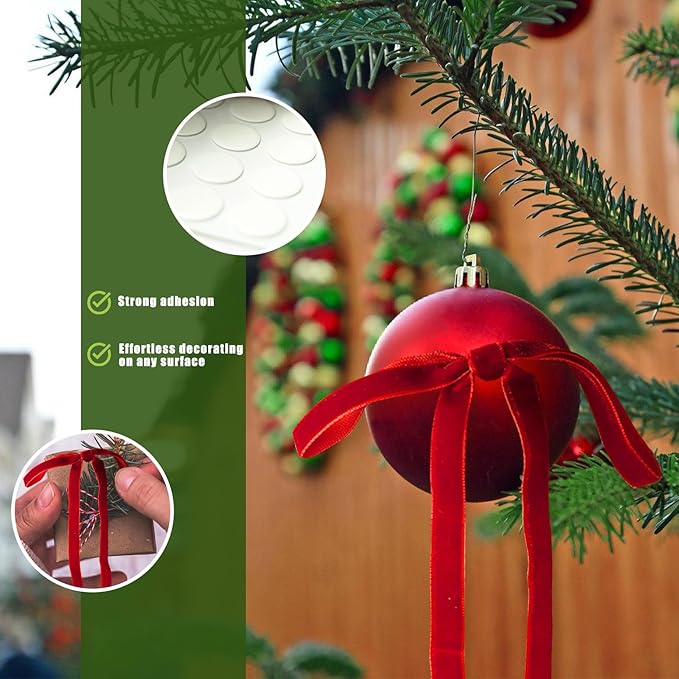 - Complete Decorating Kit - Uniquely includes 50 adhesive dots and 15m metal tie! Use the strong dots to secure bows to smooth surfaces like windows or mirrors effortlessly. The flexible wire ribbon helps attach vintage bows to tree branches, railings or staircases securely without slipping. These thoughtfully included accessories ensure a smooth, effortless, and creative decorating experience.