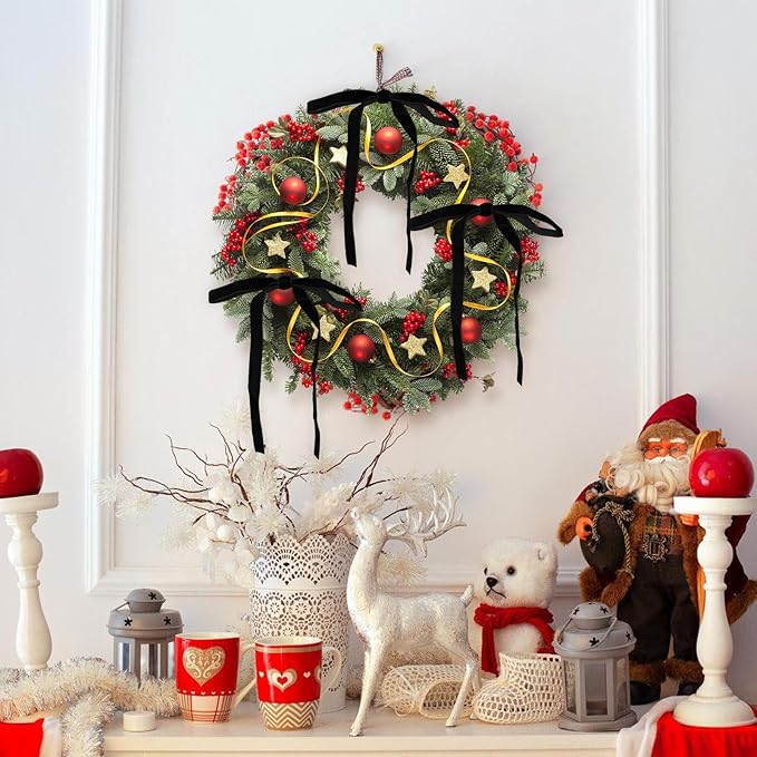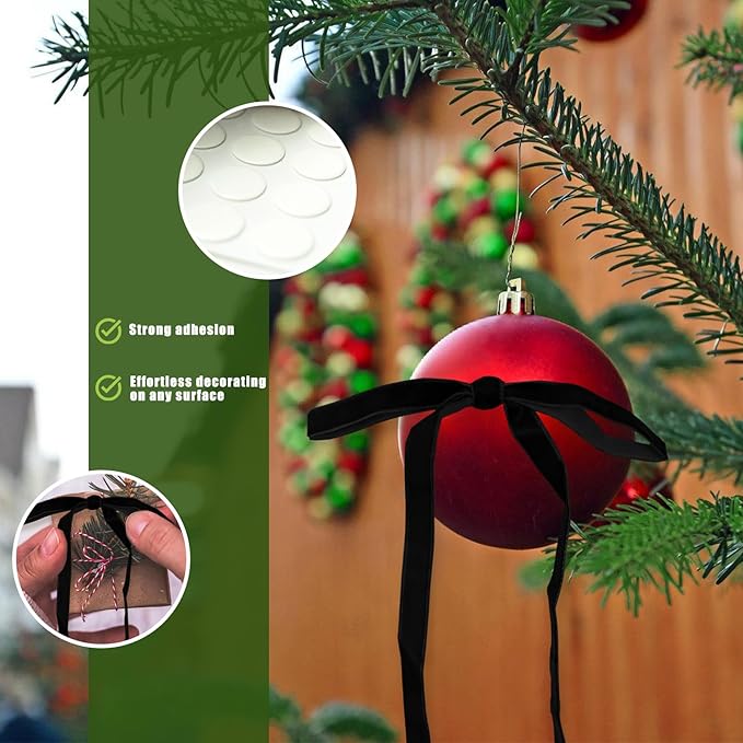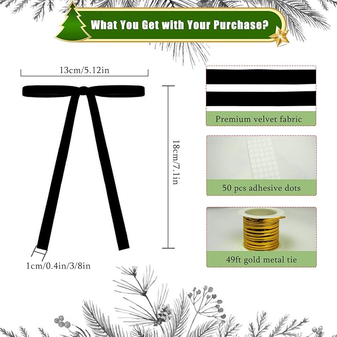 - Velvet Elegance for Your Christmas - Crafted from premium velvet, these christmas bows add a soft, shimmering elegance to your holiday decor. Each package includes 24 pcs of velvet ribbons, one 15-meter metal tie, and 50 pcs of adhesive dots. Perfect for Christmas tree, gift wrapping, wreaths, or mantel displays.