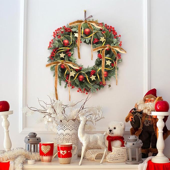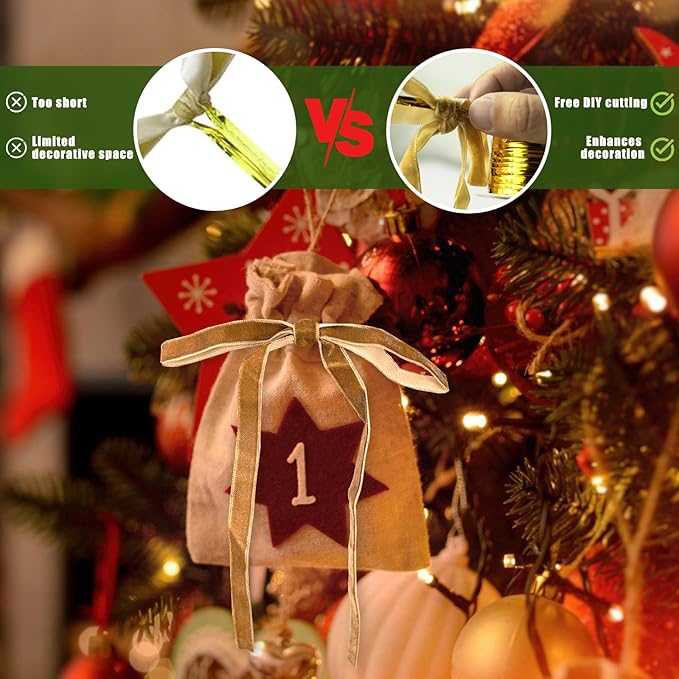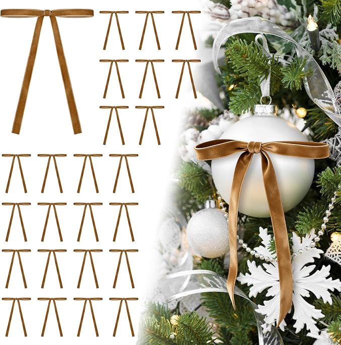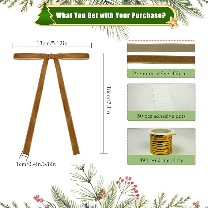 - Velvet Elegance for Your Christmas - Crafted from premium velvet, these christmas bows add a soft, shimmering elegance to your holiday decor. Each package includes 24 pcs of velvet ribbons, one 15-meter metal tie, and 50 pcs of adhesive dots. Perfect for Christmas tree, gift wrapping, wreaths, or mantel displays.