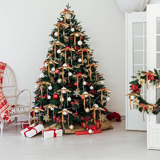 - Durable & Reusable Design - Made with high-quality velvet and reinforced wiring, our Christmas tree bows are built to last. Unlike flimsy alternatives, they resist crushing and fading, so you can enjoy their beauty year after year. Their lightweight yet sturdy construction makes storage effortless, ensuring your decor remains pristine for future celebrations.