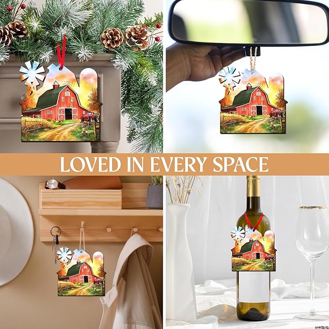 - VERSATILE FARMHOUSE CHRISTMAS DECOR – Beyond ornaments for tree, these rustic farmhouse Christmas ornaments hang beautifully on garlands, windows, or wreaths. A touching option as christmas gifts for her, christmas gifts for him, or farm house gifts for mom dad, they honor home, harvest, and family ties!