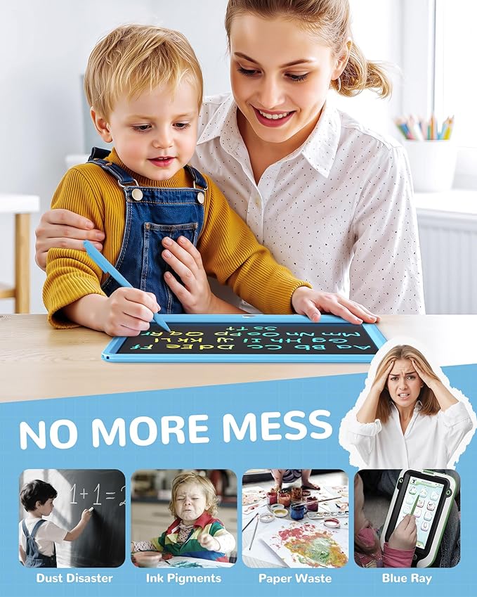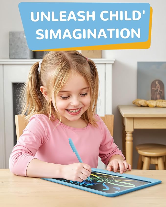 - EYE PROTECTION LCD WRITING TABLET: Adopts 2022 LCD pressure-sensitive technology and 12-inch LCD colorful screen. This doodle board toys without radiation, no glare, safe and comfortable even use for a long time.