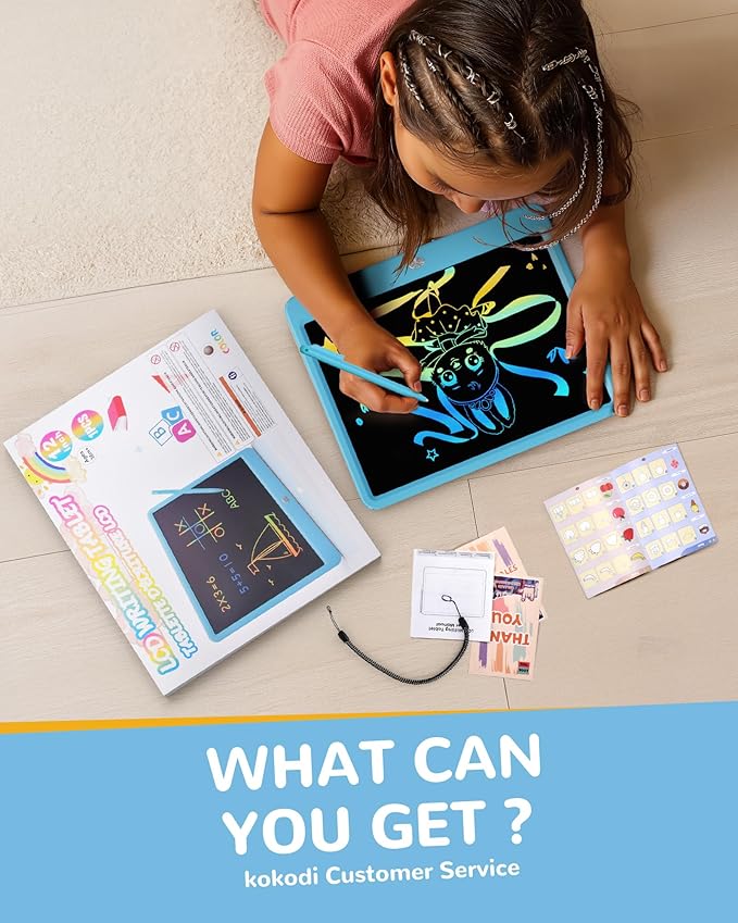 KOKODI LCD Writing Tablet, 12 Inch Colorful Toddler Doodle Board Drawing Tablet, Erasable Reusable Electronic Drawing Pads, Educational and Learning Toy for 3-6 Years Old Boy and Girls(Blue)
