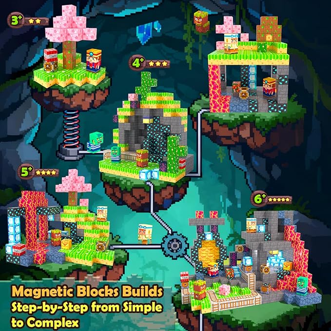 - 【FOREST & MINE THEME RECREATE GAME SCENES】The magnetic building cubes set works with all mainstream magnetic blocks on the market. Add the stem toy to your kid’s existing collection to expand their forest/mine game world. The kids toy sparks hands-on adventure, turning screen time into creative play