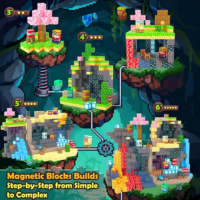 - 【FOREST & MINE THEME, 150 PCS EXPAND GAME WORLDS】150 PCS Magnetic building blocks fit all mainstream magnetic block sets—add to your kid’s collection to extend their forest/mine world. Turns screen time into hands-on fun, sparking creative play for kids ages 3-12