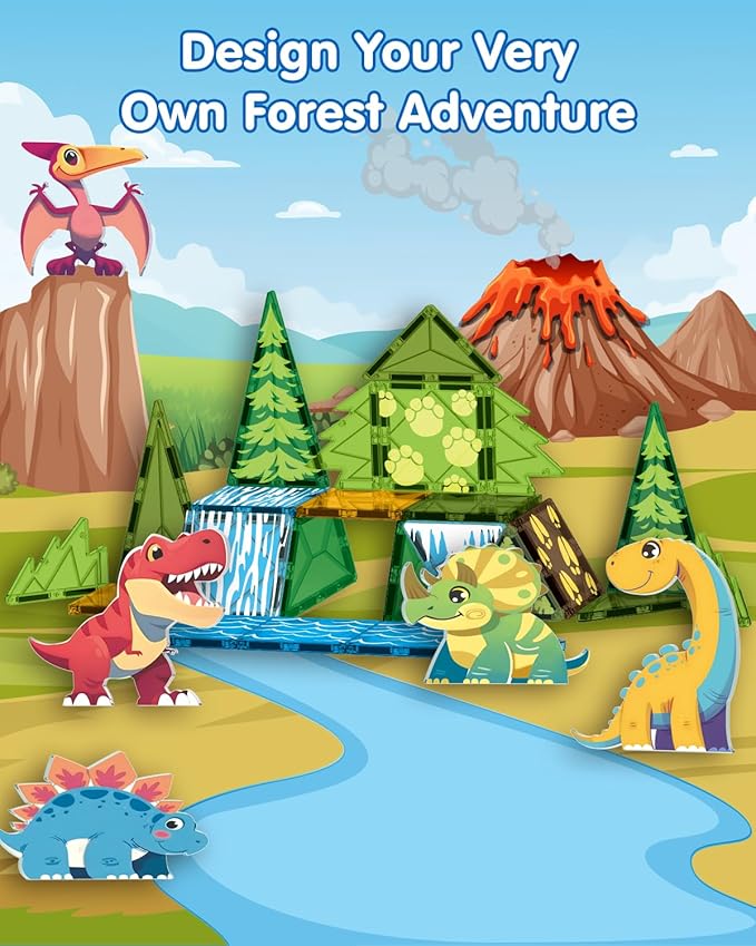 - 【Creative Building & Open-Ended Play】 Unlike ordinary animal or dinosaur toys, these magnetic tiles connect easily and allow kids to create 2D patterns or 3D structures. Build cages, trees, creeks, and habitats for animals and dinos. Every play session is a new adventure, helping children stay engaged for hours.