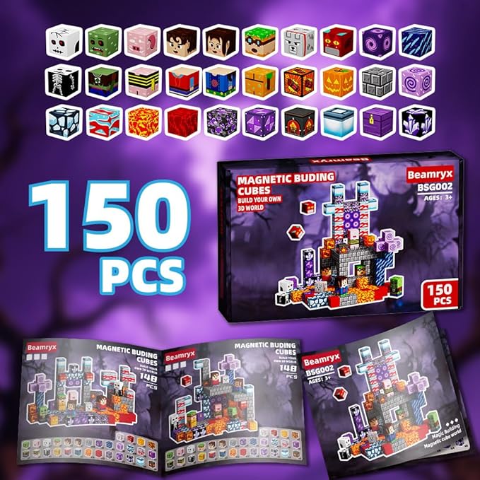 150 PCS Magnetic Blocks - Building Block for Kids Ages 4-8, Magnet Blocks Cubes Tiles Constructions Toys Girl Boy, STEM Educational Stacking Toy (BSG002)