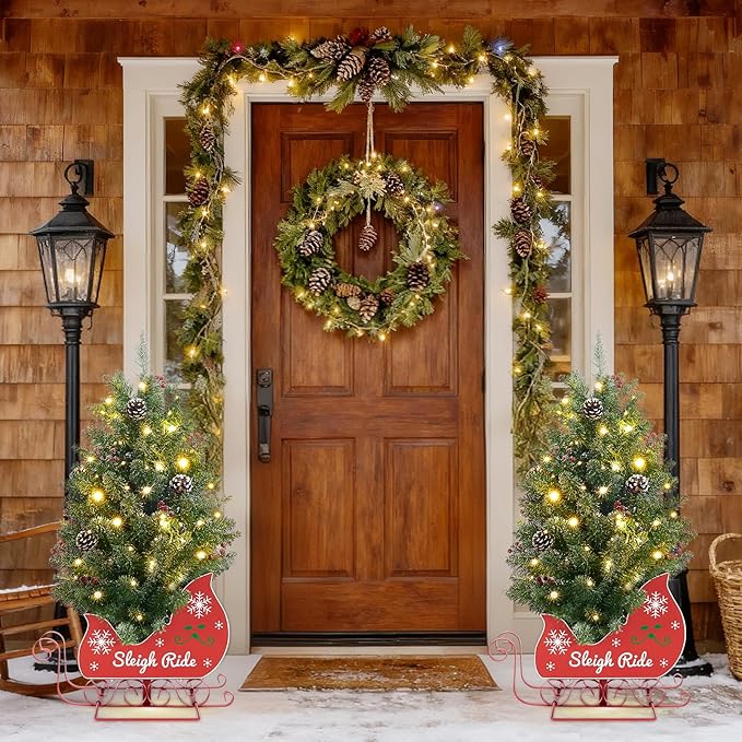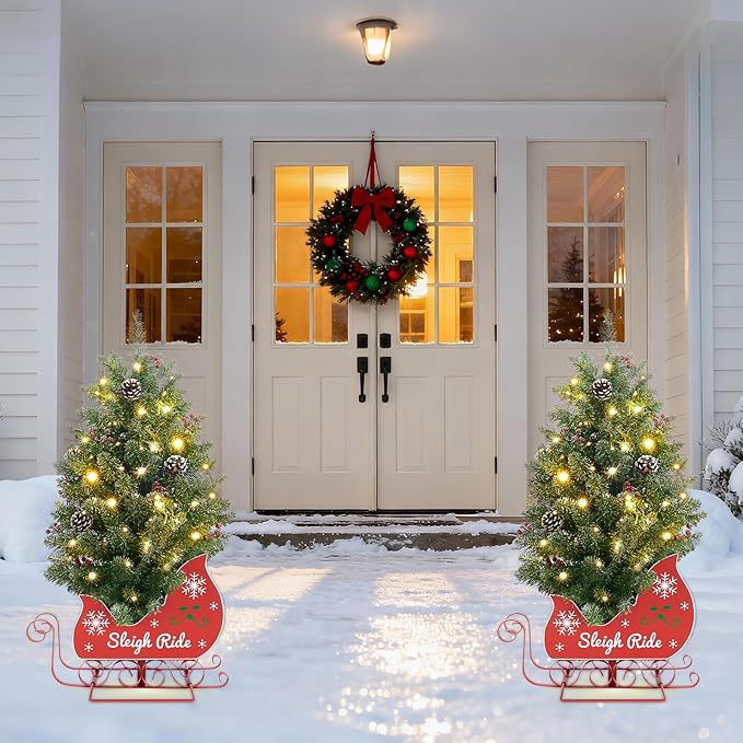 - Sturdy Cement & Red Bobsleigh Base: The 3FT Mini Christmas Tree has a cement base hidden in a red bobsleigh design, balancing beauty and stability—no tipping, reliable as a Tabletop Christmas Tree.