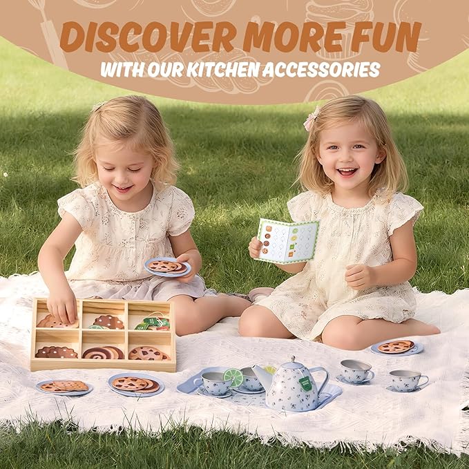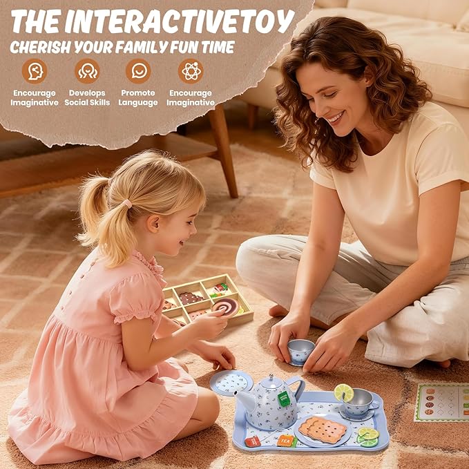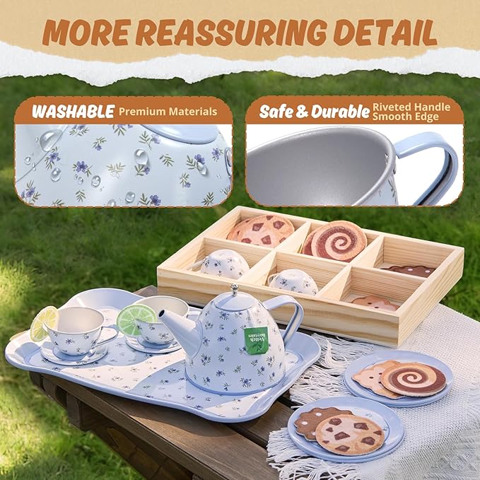 Kids Tea Party Set for Little Girl, Tea Sets for Toddler Pretend Play Food Kitchen Toy Accessories Gift for 3 4 5 6 Years Old Girls Boys (Blue)