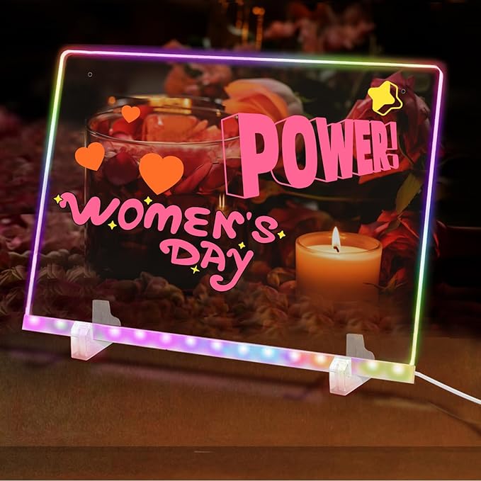 - LED Note Board: The LED acrylic message board with 7 color is an advanced dry erase board that combines practicality and fashion. The stylish design adds a unique charm to your desktop. Size: 13"X10"