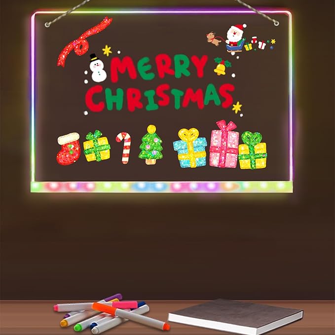 SetGame LED Drawing Board with Colors, 16 Inch Doodle LED Note Boards Include 7-Color Pens,9 Lighting Modes, Hanging Chain - Light up Dry Erase Board for Kids/Adults/Christmas/Birthday/Gifts