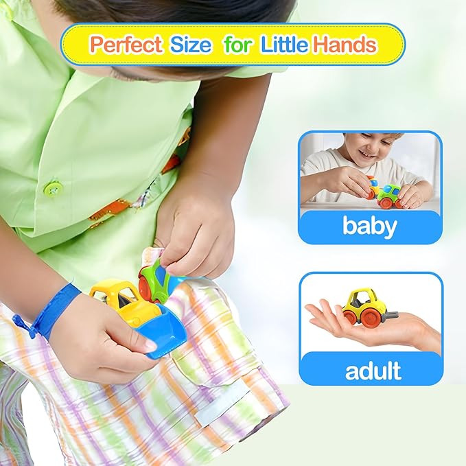 - More Fun with Mini Kids Toys: Toys for toddlers 1-3 are great birthday gift that encourages parent-child interaction, learning, and play. Its perfect size and compact design make it easy to hold and carry anywhere for multiple uses. Suitable for both indoor and outdoor sandbox play. NOTE: Batteries Are Not Needed for mini trucks.