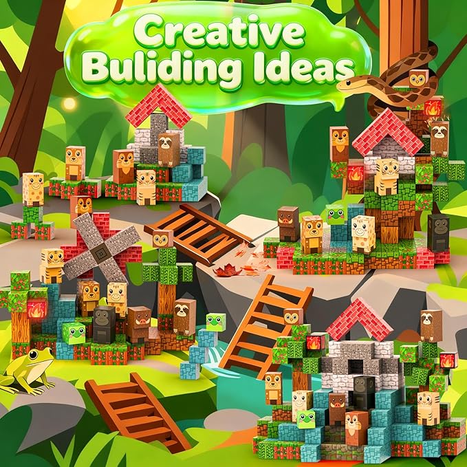 - 【Animal Kingdom Adventure】 Step into a wild world with our magnetic blocks! Each compact 0.8-inch cube fits perfectly in little hands, allowing kids to build detailed animal habitats with forests, rivers, and roaming creatures like tigers, giraffes, and sloths. Every magnetic "click" brings their wildlife story to life—the ultimate magnetic blocks animal toy for ages 3 and up.