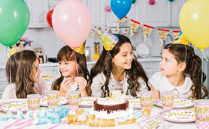 - Eye catching design: Our pink party cutlery set features many cute elements such as pink bows, polka dots, pink balloons, etc., creating a cheerful birthday atmosphere that will make you and your family have an unforgettable day