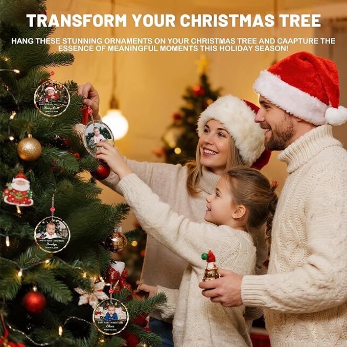 - 🎄Versatile & Heartwarming Decor🎄Measuring approximately 7.8 x 7.8 cm (about 3.07 inches), this photo ornament is compact yet eye-catching. Whether hung on the Christmas tree, door wreath, above the crib, or from your car rearview mirror, it instantly adds a festive atmosphere and accompanies you in every beautiful daily moment.