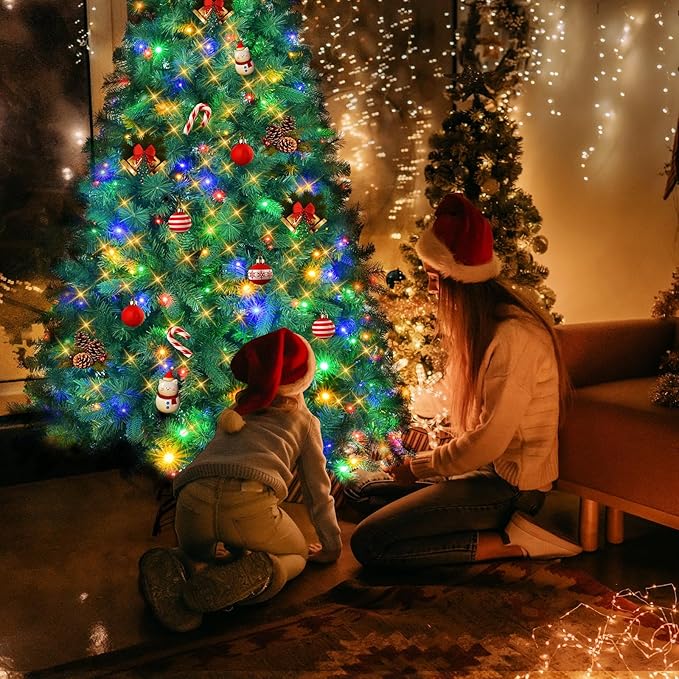 - 8 Remote Lights Modes & Pre-Desgn: 6ft pre-lit artificial Christmas tree is equipped with 250 Multi-Color lights, which you can use the controller included to change in 8 kinds of light sequences. The tips of the hinged full christmas tree feel like the real branches creating a strong festive atmosphere. Suitable for indoor, home, office, party.