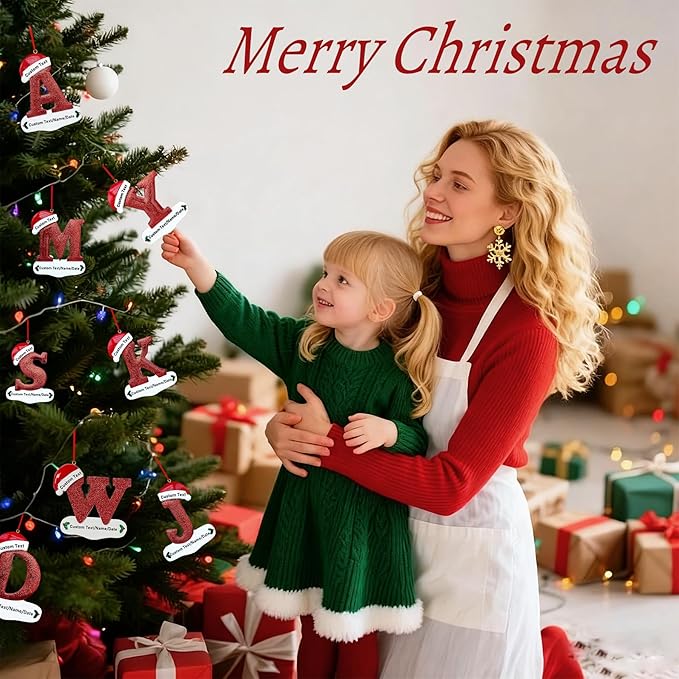 - 26 letter custom Christmas decoration: Click on the custom option, select the desired letter+upload text/name, and create a unique decoration with exclusive carving, keeping warm memories for the 2025 Christmas.