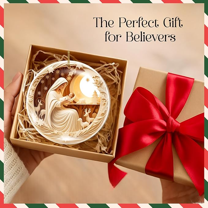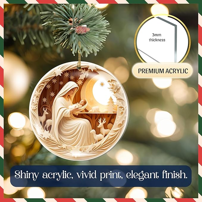 2025 Christmas Ornament β Holy Nativity Scene Acrylic Ornament, Virgin Mary and Baby Jesus Religious Decoration for Tree, Dated Navidad 2025 Ornament, Christian Catholic Christmas Decor Gift