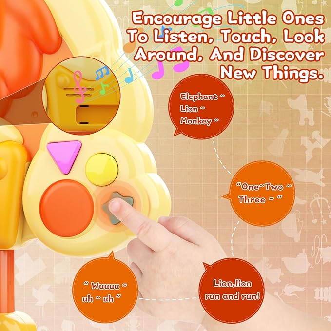 - Toys for 1 Year Old, Fine Motor Skill Development: Our toddler toy with colorful lights, game buttons, spinning gears, trophy slider, twirling tail, clock rotating and time learning. It will help babies develop fine motor skills through a series of movements including pressing, rotating and grabbing. Turn the gears or press the shape buttons to introduce Shapes, numbers, and playful sounds. Encourage little ones to listen, touch, look around, and discover new things.