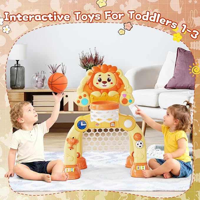 Toddler Basketball Hoop Soccer Goal for Kids 1-3, Baby Toys for 1 Year Old Boy Gifts, Kids Sports Toy with Light Sound Music, Baby Interactive Toys for Christmas Birthday Gifts for Baby(Lion)