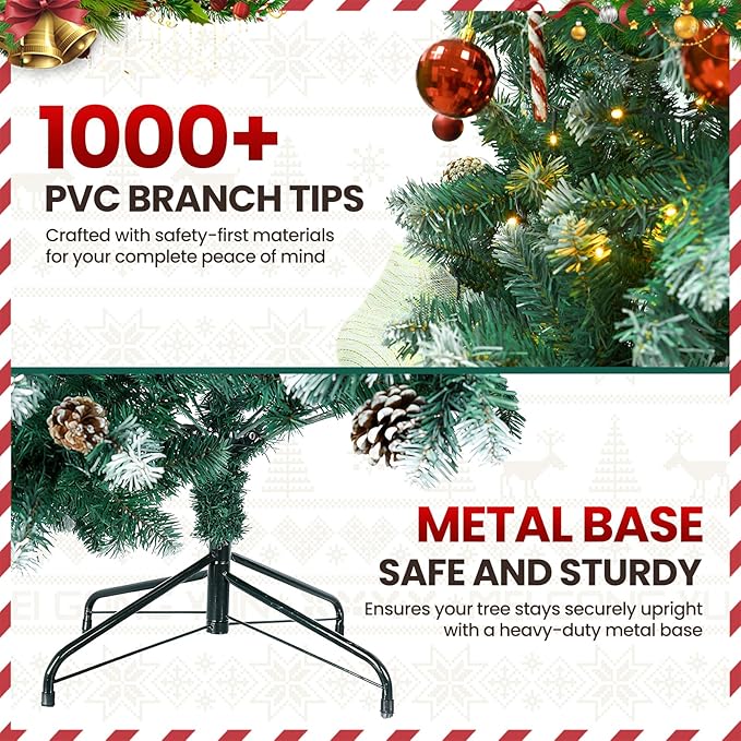 - Realistic Green Tree with Natural Pine Cones: Experience an authentic woodland look with our lifelike green Christmas tree featuring carefully placed pine cones. The realistic branch tips and natural colors bring outdoor beauty inside.