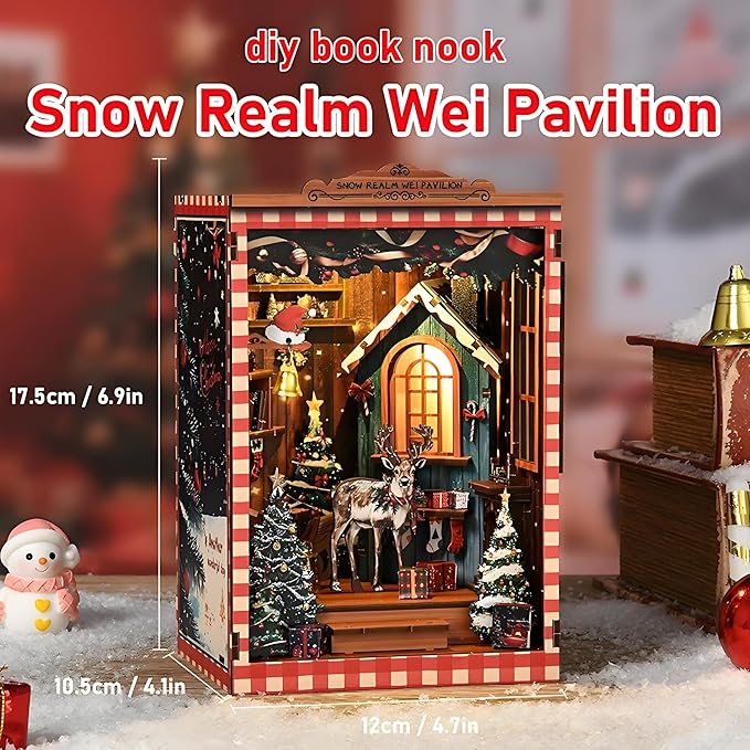 Miniature Christmas Book Nook Kits for Adults - DIY Tiny House 3D Wooden Puzzle Xmas Books,Beautiful Bookshelf Decoration for All Occasions(Christmas Snow Realm)