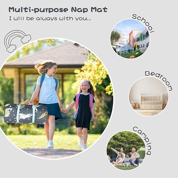 - SKIN-FRIENDLY AND ULTRU SOFT. The nap mat is made of soft cotton fabric and filled with fluffy cotton. And we choose the pretty colors and playful designs to make the nap time more interesting and sweet for your kids.