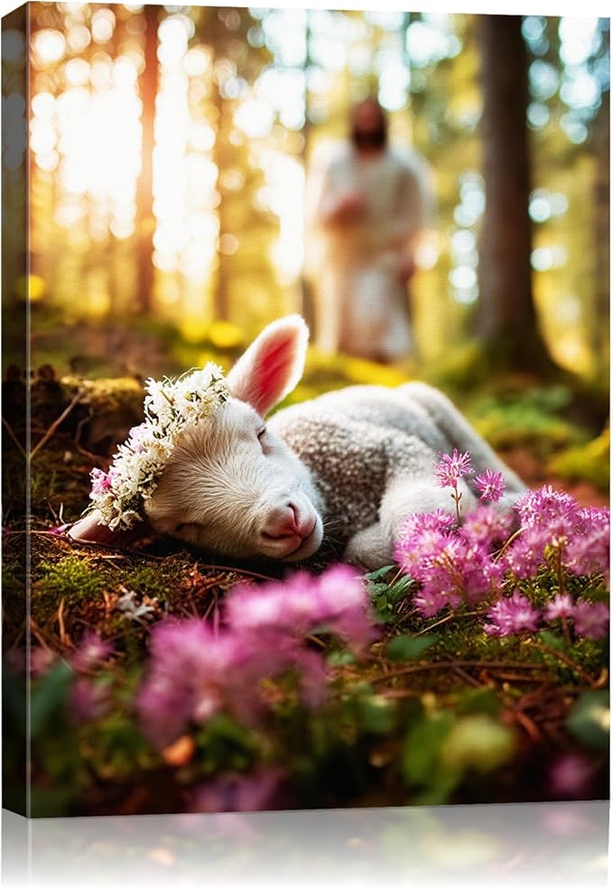 AbcCustomize Jesus Running After Lost Lamb Christian Wall Decor, Religious Wall Decor for Home, Jesus Wall Art Canvas Prints Ready to Hang, Inspirational Christian Art for Prayer Room, Baptism Gift