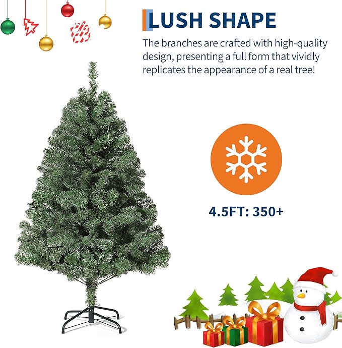 4.5ft Artificial Christmas Tree, Premium Spruce Hinge Material, Holiday Christmas Tree with Metal Hinges and Collapsible Base for Home Gatherings and Office Decorations