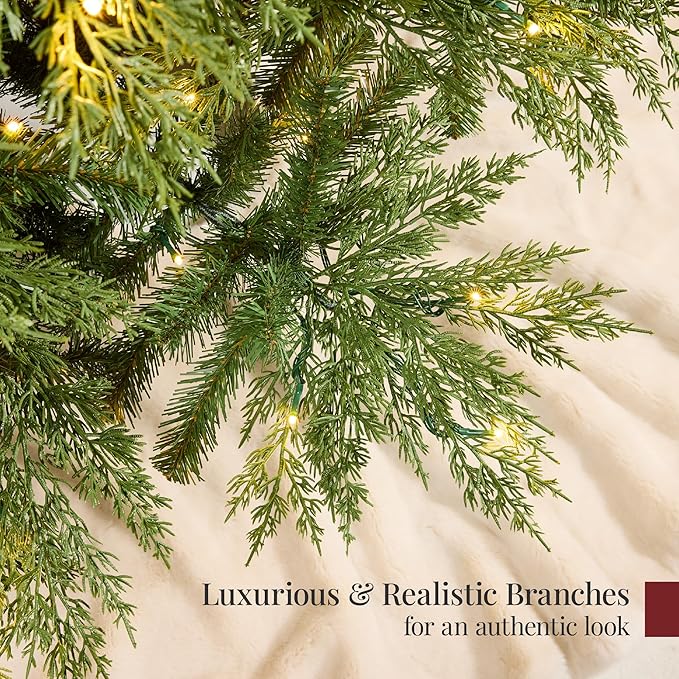 - THE LOOK OF LUXURY: This elegant Christmas Tree features a lifelike blend of PE and PVC needles, capturing the realistic look of a cedar/cypress tree for a stunning holiday centerpiece.