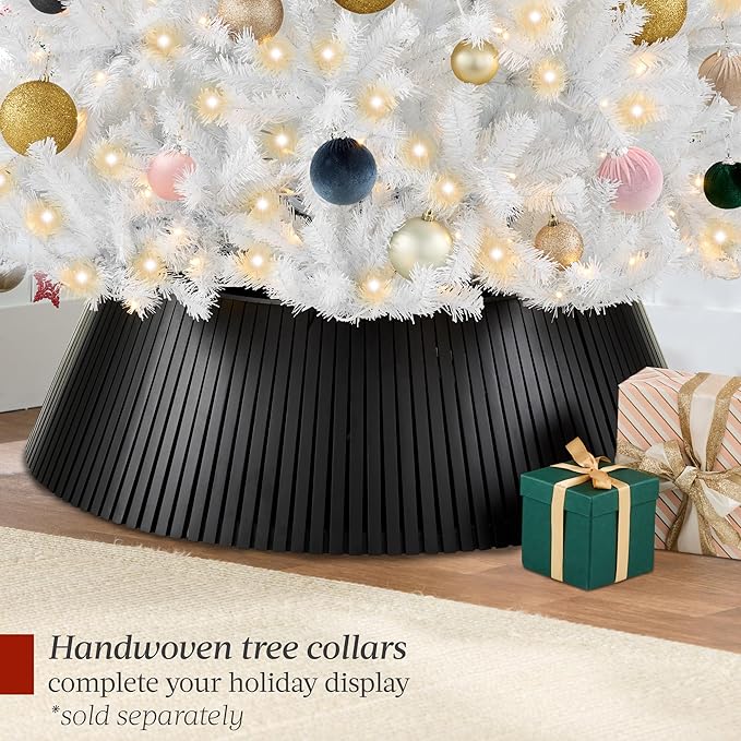 - HIGH-QUALITY MATERIALS: Crafted with strong metal hinges and flame-retardant PVC branches that stand tall with the help of a sturdy metal base, so your tree is ready to look its best for the season ahead!; OVERALL DIMENSIONS: 51"(Dia) x 90"(H)