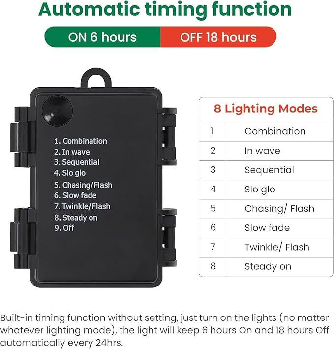 - 【Prelit LED & 8 Modes】 Enjoy a prelit Christmas tree with 78 dual-color LED lights and 8 dazzling lighting modes. The artificial Christmas tree with lights is battery-operated for flexible placement and features a timer function, allowing for easy, reliable illumination throughout the season (batteries not included).